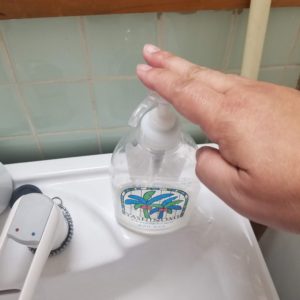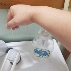 消毒液だけじゃなくて、本来は手洗い石鹸のプッシュも手のひらじゃないほうがいいと思います。