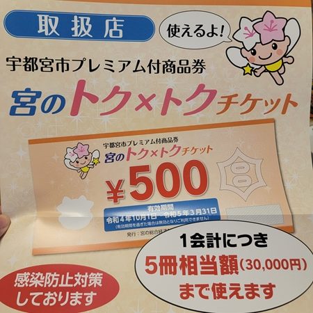「宇都宮市プレミアム付き商品券 宮のトク×トクチケット」
